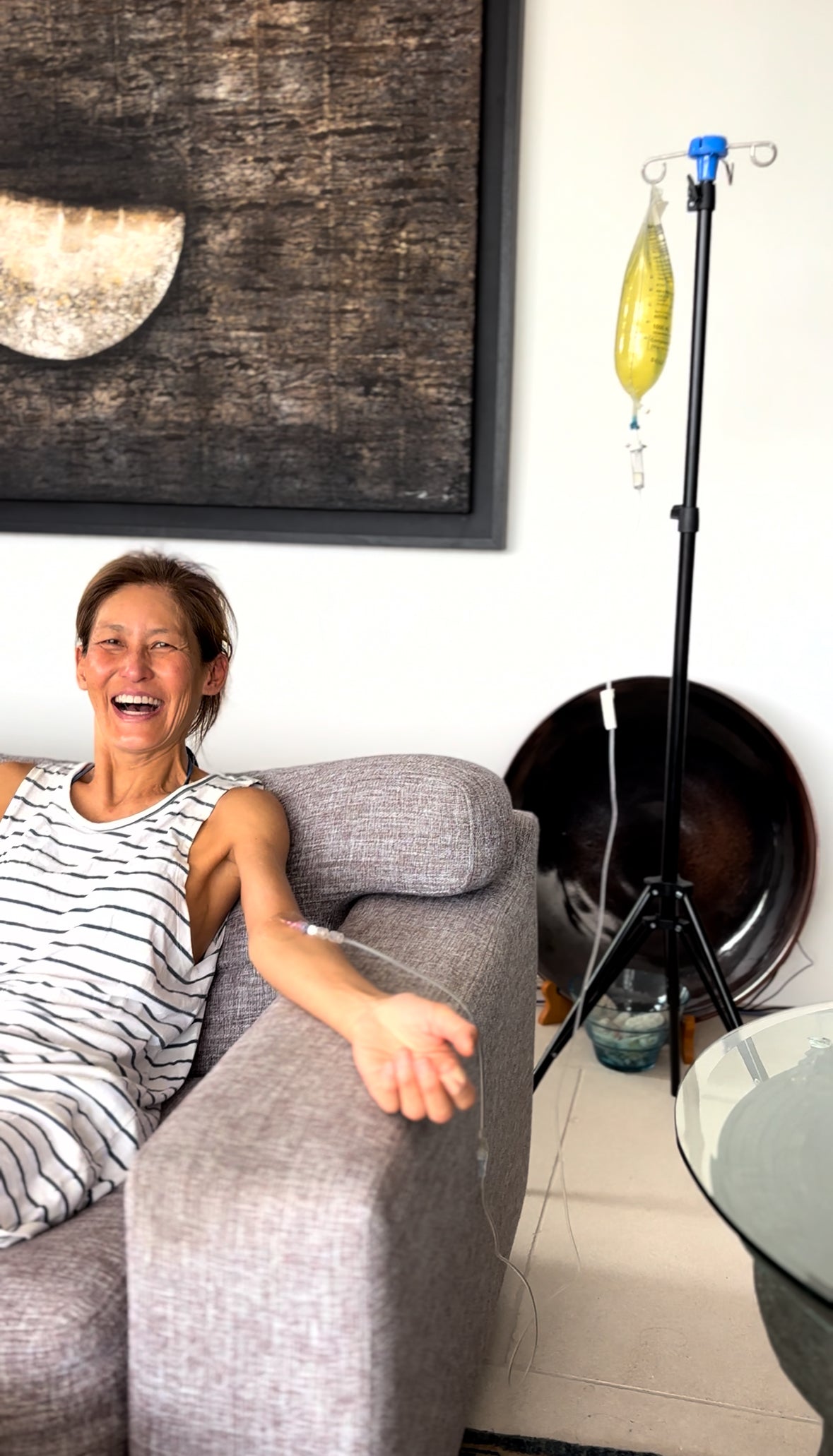 Your IV specialist will assess you and briefly call our Doctor for confirmation of treatment. Then we will insert your Cannula (sharp scratch and only a tephlon left inside) and hang up your chose infusion to slowly drip through you.